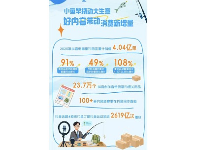 抖音电商相关负责人表示,垂钓凭借强社交属性和沉浸体验,正在成为抖音平台最受关注最有热度的细分运动。平台将持续投入更多资源,扶持更多垂钓创作者与产业带商家,联动生态伙伴促成更多赛事新内容,让小鱼竿不仅钓起休闲乐趣,也钓出更多生意新增量。