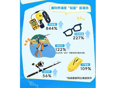 随着露营徒步等户外活动的兴起,溪流钓、小物钓等“轻量化”垂钓新趋势开始流行。报告显示,平台上溪流钓相关商品成交额同比增长122%,在城市周边、小区附近享受日常垂钓乐趣的人开始增多。与此同时,垂钓装备消费也呈现专业化趋势,平台探鱼器成交额同比增长844%,打窝船成交额同比增长109%。